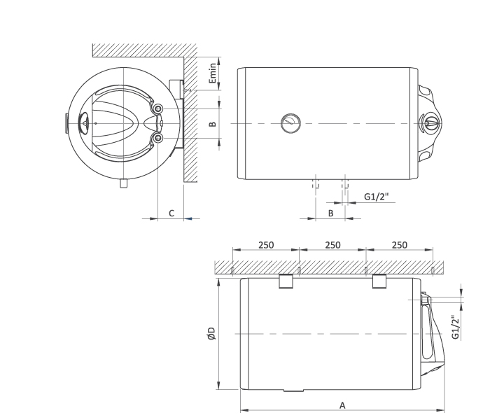 Visina: 1150mm Širina: 480mm Zapremina: 150 L Snaga grejača: 2000 W
